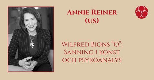 I sin föreläsning kommer Reiner att presentera några av Bions nydanande psykoanalytiska begrepp, däribland det kontroversiella och enigmatiska begreppet“O”, som representerar en absolut sanning och som Bion såg som ett centralt perspektiv för både psykoanalytikern och konstnären. Hon kommer även presentera några av de idéer som förs fram i hennes senaste bok "The Poetry, Art and Science of Psychoanalysis in Bion’s ‘O’" där begreppet “O” diskuteras genom exempel från skilda discipliner så som religiös mysticism, poesi och konst.